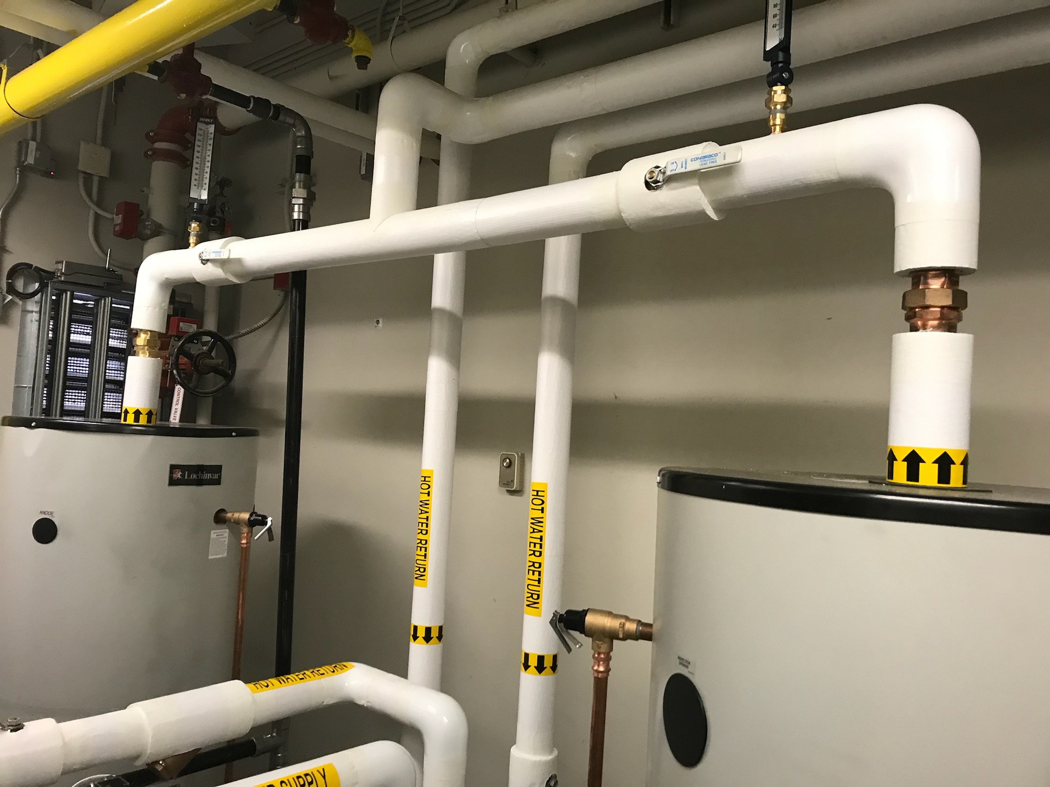 Domestic water systems, sanitary and roof drain systems.