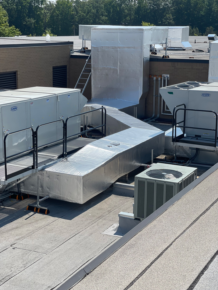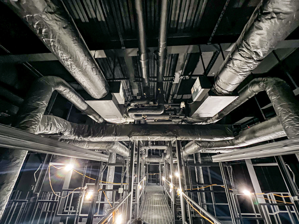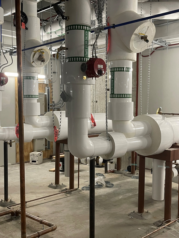 Interior and Exterior mechanical piping and duct systems including: Chilled Water Systems, Steam systems, Heating Hot Water Systems, Duct systems, Refrigeration piping.